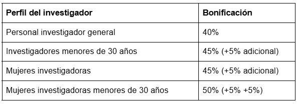- Maximiza las deducciones: personal investigador exclusivo (+17%), inversiones (+8%)