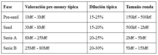 Consejo práctico: Si un inversor te pide más del 30% en tu primera ronda institucional (Seed o Serie A), probablemente estás levantando a una valoración demasiado baja. Revisa tus números y habla con otros founders de tu sector para contrastar valoraciones de mercado.