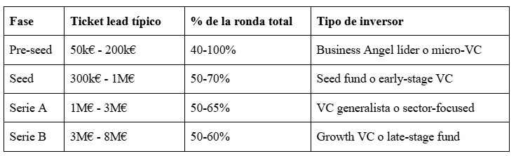 Consejo práctico: Si tu lead te pide cerrar más del 80% de la ronda antes de que él desembolse, es señal de que no tiene suficiente convicción. Un lead de verdad invierte primero y luego te ayuda a cerrar el resto, no al revés.