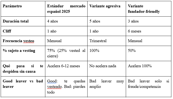 - Vesting agresivo sin protección de good leaver (puede costarte la mitad de tu equity si tienes que salir)