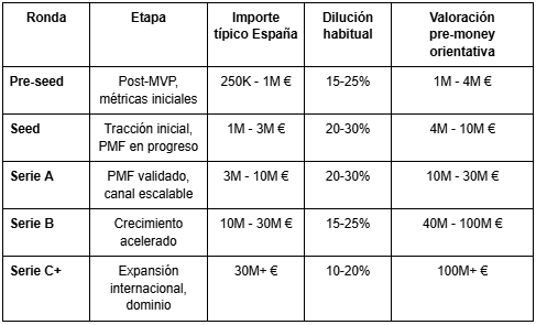 Importe típico startups con tracción: 50K - 500K €.